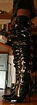 This beautiful mature shemale is posing on the toilet in a sexy latex corset